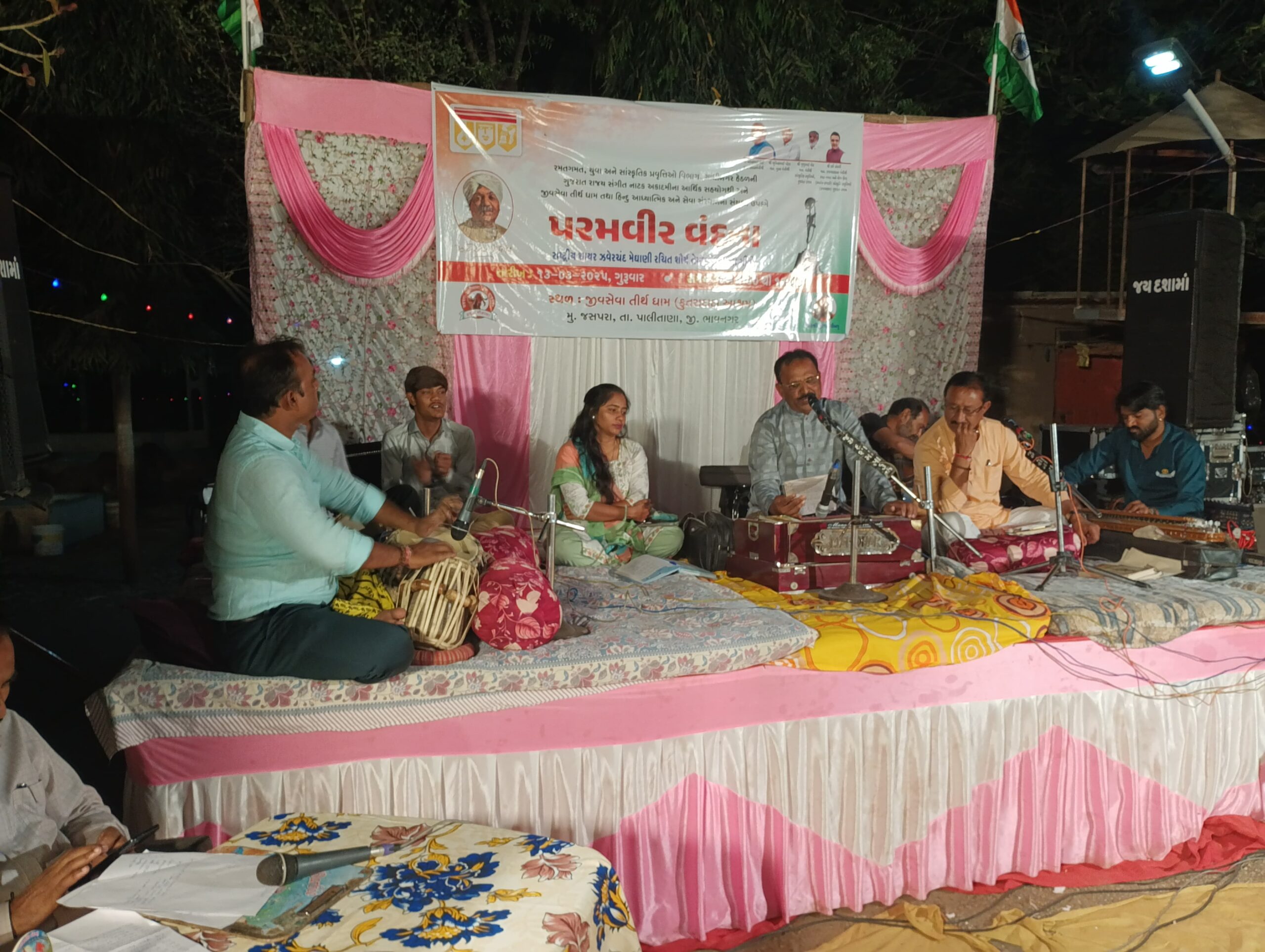 ભાવનગર જીલ્લાના પાલીતાણા તાલુકાના જસપર ગામ ખાતે સોનગઢ પાલીતાણા હાઇવે માર્ગ પર આવેલ સુપ્રસિધ્ધ જીવસેવા તીર્થ ધામ ખાતે આશ્રમના મહંત મુકેશગીરી બાપુના સાનિધ્યમાં ગુજરાત રાજ્ય રમત ગમત, યુવા અને સાંસ્કૃતિક પ્રવૃત્તિઓ વિભાગ ગાંધીનગર હેઠળની ગુજરાત રાજય સંગીત નાટક અકાદમીના આર્થિક સહયોગથી અને જીવસેવા તીર્થ ધામ તથા હિન્દુ આધ્યાત્મિક અને સેવા સંસ્થાનનાં સંયુક્ત ઉપક્રમે ભવ્ય દિવ્ય અને રાષ્ટ્રીય પરમવીર વંદના કાર્યક્રમ યોજાયો હતો.