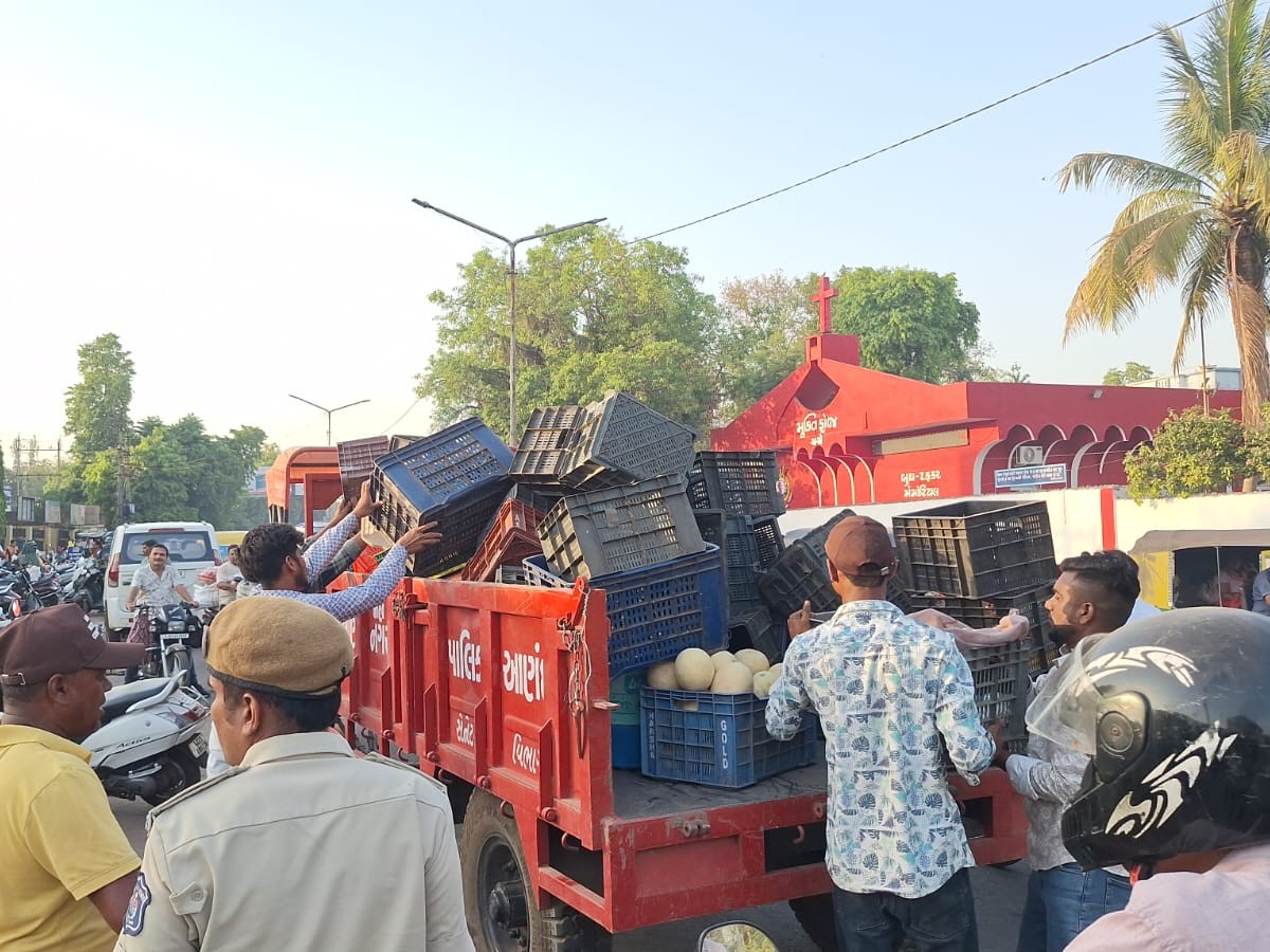 સ્ટેશન રોડ પર મોટી શાકમાર્કેટ પાસે ફળ વેચનારા લારીધારકો દ્વારા જાહેર રસ્તા પર અતિક્રમણ કરવામાં આવતું હતું.