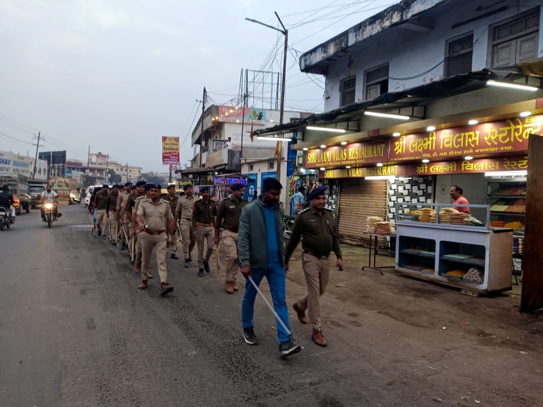 ભુજ શહેરમાં સી ટીમે એરપોર્ટ રિંગ રોડ પર ખાસ ટ્રાફિક ડ્રાઇવ યોજી વાહન તપાસ કરી હતી. આ ઉપરાંત, નખત્રાણા પોલીસે પણ 31 ડિસેમ્બરની ઉજવણીના અનુસંધાનમાં ફૂટ માર્ચ કરી હતી. નખત્રાણા પોલીસ સ્ટેશનથી સુપરમાર્કેટ, વથાણ, મુખ્ય બજાર, જૂનાવાસ અને નવાવાસ સહિતના વિસ્તારોમાં પોલીસે ફરીને પરિસ્થિતિ પર નજર રાખી હતી. પીઆઈ એ.એમ. મકવાણાની સૂચનાથી શાંતિપૂર્ણ ઉજવણી માટે ચેકિંગ હાથ ધરાયું હતું.