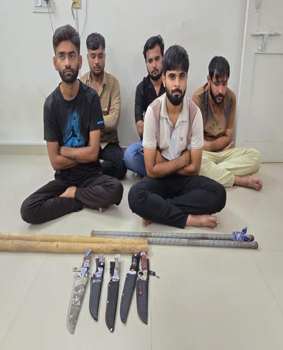 રાજકોટ શહેર તા.૬/૧૦/૨૦૨૫ ના રોજ રાજકોટ શહેર વિસ્તારના શરીર સબંધીત તથા મિલકત સબંધીત ગુન્હાઓ બનતા અટકાવવા માટે સઘન પેટ્રોલીંગ રાખવા સુચના કરેલ હોય જેથી પોલીસ સ્ટેશનના P.I વી.આર.વસાવા નાઓની સુચનાથી સર્વેલન્સ સ્કોર્ડના જે.એમ.જાડેજા તથા સર્વેલન્સ સ્ટાફના માણસો પોલીસ સ્ટેશન વિસ્તારમા પેટ્રોલીંગમા હતા તે દરમ્યાન પોપટપરા નાલા પાસે પહોંચતા પાંચ ઈસમો ગેરકાયદેસર તીક્ષ્ણ હથીયારો લાકડાના ધોકા તથા લોખંડના પાઈપ સાથે લઈને શંકાશીલ હાલતમા હથીયાર બંધી જાહેરનામાનો ભંગ કરી મળી આવતા ગુન્હો કરેલ હોય, જેથી તમામ ઈસમો વિરૂધ્ધ કાયદેસરની કાર્યવાહી કરેલ છે. (૧) અલીભાઈ રજાકભાઈ શેખ જાતે,ફકીર ઉ.૨૦ રહે,નવા થોરાળા શેરીનં.૨ રામનગર રાજકોટ (૨) અરબાઝભાઈ રફીકભાઈ રાઉમા જાતે,સંધી ઉ.૨૮ રહે.નવા થોરાળા શેરીનં.૨ શાળાનં.૨૯ ની બાજુમા રાજકોટ (૩) સોયેબભાઈ રજાકભાઈ ઓડીયા જાતે,ઘાંચી પીંજારા ઉ.૨૪ રહે.દેવપરા મેઈન રોડ નિલમપાર્ક ક્વાજા એપાર્ટમેન્ટ બાજુમા રાજકોટ (૪) અબ્દુલભાઈ અનવરભાઈ દલ જાતે,સીંધી ઉ.૨૭ રહે,નવા થોરાળા શેરીનં.૨ રામનગર રાજકોટ (૫) ઈમરાનભાઈ અલ્તાફભાઈ પરમાર જાતે,ધાંચી ઉ.૨૮ રહે.વિબોદનગર ક્વા.નં.૩ હુડકો ચોકડી પાસે કોઠારીયા રોડ રાજકોટ.