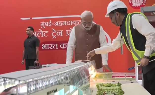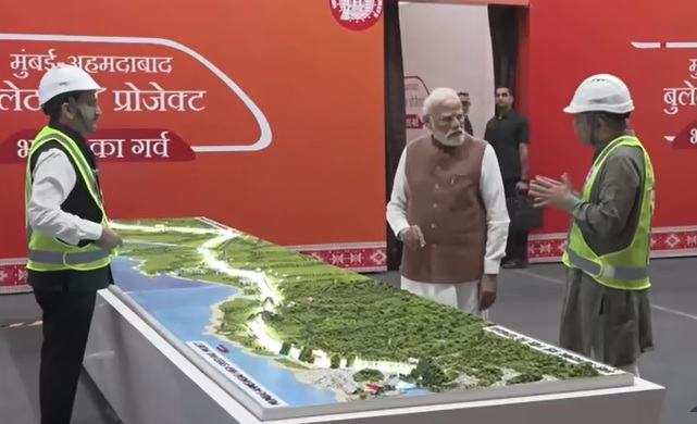 પ્રધાનમંત્રી શ્રી નરેન્દ્ર મોદીએ સુરત, ગુજરાત ખાતે ભારતની હાઇ-સ્પીડ બુલેટ ટ્રેન ગતિની સમીક્ષા કરી હતી. તેમણે ભારતની પ્રથમ બુલેટ ટ્રેન પ્રોજેક્ટની ટીમ સાથે પણ વાર્તાલાપ કર્યો હતો. અને પ્રોજેક્ટની પ્રગતિ વિશે પૂછપરછ કરી, જેમાં ઝડપ અને સમયપત્રકના લક્ષ્યાંકોનું પાલન થઈ રહ્યું છે કે કેમ તે જાણ્યું હતું. કામદારોએ તેમને ખાતરી આપી કે પ્રોજેક્ટ કોઈ પણ મુશ્કેલી વિના સરળતાથી આગળ વધી રહ્યો છે.
