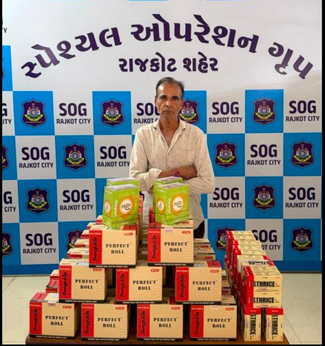 રાજકોટ શહેર તા.૧૭/૧૨/૨૦૨૫ ના રોજ રાજ્યમાં સગીર/યુવાનો દ્રારા અલગ-અલગ પ્રકારના નશાઓ જેવા કે ચરસ ગાંજાનું સેવન કરવા માટે રોલીંગ પેપર, ગોગો સ્મોકીંગ કોન, પરફેક્ટ રોલ જેવી વસ્તુઓનો ઉપયોગ કરવામાં આવે છે. તે પદાર્થની અંદર ટાઈટેનીયમ, ઓક્સાઇડ, પોટેશીયમ નાઇટ્રેટ, આર્ટીફીશયલ ડાય, કેલ્શીયમ કાર્બોનેટ તથા ક્લોરીન બ્લીચ જેવા ઝેરી પદાર્થ હોય છે. જે માનવ સ્વાસ્થય માટે ખુબ જ હાનીકારક છે. આવા રોલીંગ પેપર, ગોગો સ્મોકીંગ કોન, પરફેક્ટ રોલ જેવી વસ્તુઓ પાન પાર્લર, પરચુરણ કરીયાણાની દુકાનો તથા ચાની દુકાનદારો વિગેરે ઉપરથી મળી રહેતા હોય છે. જેના પરિણામે યુવા વર્ગમાં નશો કરવાની વૃતિમાં વધારો થાય છે. આથી રોલીંગ પેપર, ગોગો સ્મોકીંગ કોન, પરફેક્ટ રોલ જેવી વસ્તુઓ ગુજરાત રાજ્યમાં આવેલ પાન પાર્લર, ચાની દુકાનો, છુટક કરીયાણાની દુકાનો વિગેરેમાં વેચાણ ન થાય તે બાબતે ગુજરાત સરકાર ગૃહ વિભાગ ગાંધીનગર દ્રારા જાહેરનામુ પ્રસિધ્ધ કરેલ હોય જે બાબતે ચેકીંગ હાથ ધારી કાર્યવાહી કરવા સુચના કરેલ, SOG P.I એસ.એમ.જાડેજા ની રાહબરી હેઠળ વી.વી.ધ્રાંગુ ના માર્ગદર્શન હેઠળ તા.૧૭/૧૨/૨૦૨૫ ના રોજ એસ.ઓ.જી. શાખાની ટીમ પેટ્રોલીંગ તેમજ ચેકીંગમાં હતી તે દરમ્યાન હાર્દિકસિંહ પરમાર તથા યોગેન્દ્રસિંહ ઝાલા નાઓની સંયુકત બાતમી આધારે રાજકોટ શહેર રૈયા રોડ રામેશ્વર ચોક ‘જલારામ નાયલોન ખમણ’ નામની દુકાન ખાતે ચેક કરતા મહેશભાઇ ધીરજલાલ રાજવીર ઉ.૬૫ રહે- વેરાઇ કૃપા મકાન રામેશ્વર પાર્ક શેરીનં.૩ રૈયા રોડ રાજકોટ વાળાની દુકાન ખાતેથી રોલીંગ પેપર, ગોગો સ્મોકીંગ કોન, ફિલ્ટર ટીપ્સ, ક્રસીંગ ટ્રે વેચાણ અર્થે રાખી કુલ મુદ્દામાલ કિંમત રૂ.૫૮,૯૨૦ જથ્થા સાથે મળી આવતા ઇસમ વિરુધ્ધ ભારતીય ન્યાય સંહિતા-૨૦૨૩ ની કલમ-૨૨૩ મુજબનો ગાંધીગ્રામ-૨ પો.સ્ટેમાં ગુન્હો રજીસ્ટર કરાવી કાયદેસરની કાર્યવાહી કરેલ છે.