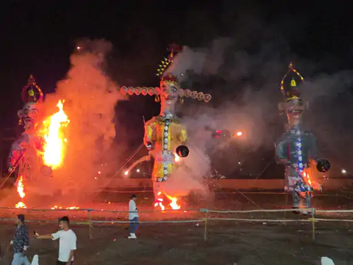 પ્રદર્શન મેદાનમાં મેઘનાદ અને કુંભકર્ણના 30-30 ફૂટ ઊંચા અને રાવણનું 35 ફૂટ ઊંચું પુતળું બનાવવામાં આવ્યું હતું. આ પુતળાઓમાં ફટાકડા ભરીને તેમને ઉભા કરાયા હતા. રામ અને રાવણના યુદ્ધ બાદ ભગવાન શ્રીરામના તીર દ્વારા પુતળાઓને પલિતો ચાંપવામાં આવ્યો હતો, જેનાથી તેમનું દહન થયું.