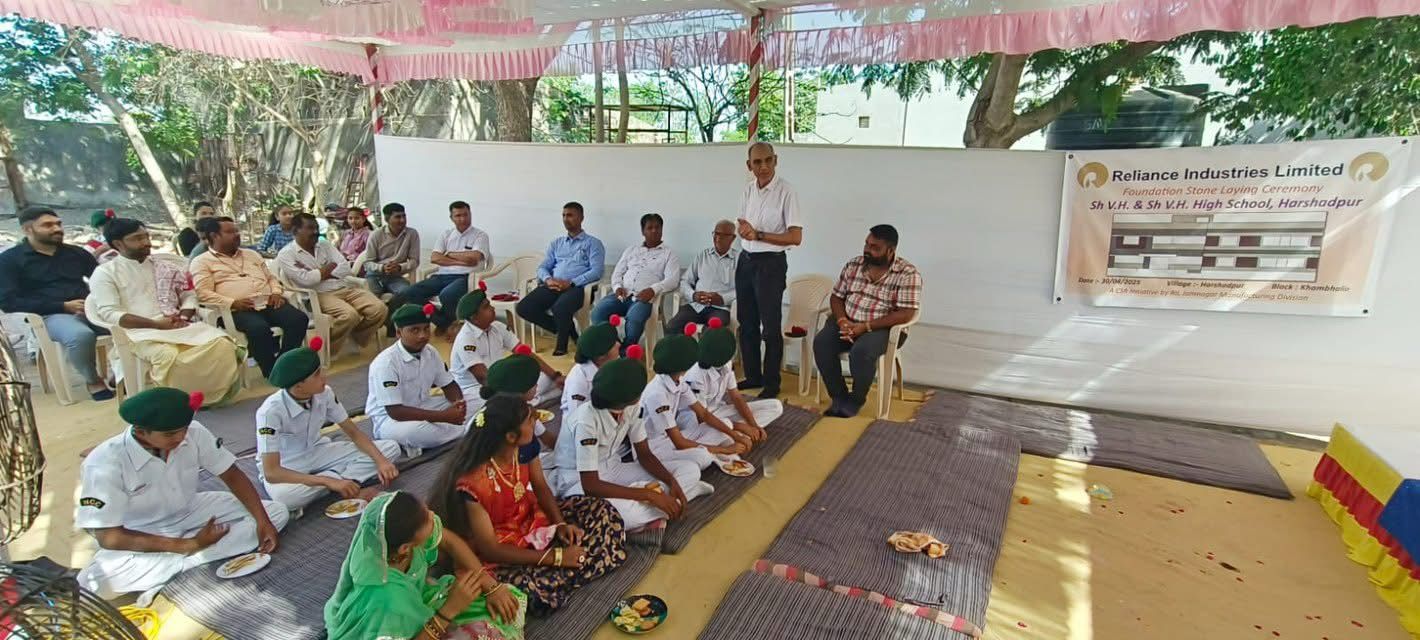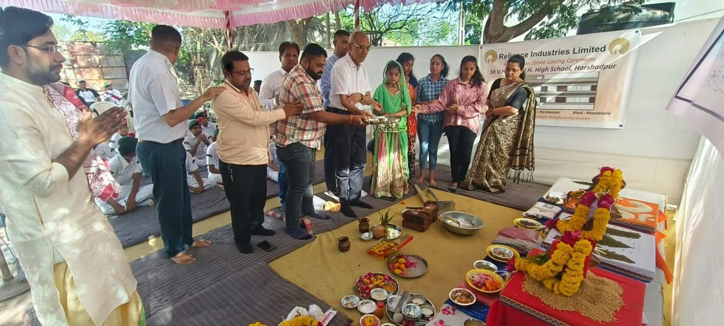 રિલાયન્સ દ્વારા હર્ષદપુરમાં નવા શાળા ભવનનો ભૂમિપૂજન સમારંભ યોજાયો