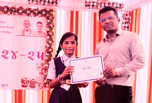 જિલ્લા કક્ષાનાં કલા મહાકુંભ 2024-25 અંતર્ગત યોજાયેલ વકતૃત્વ સ્પર્ધામાં 6 થી 14 વર્ષની વય જૂથમાં આ પ્રતિભાવંત દીકરીએ પ્રથમ ક્રમ મેળવી ઝોન અને રાજ્ય કક્ષા તરફ દોટ માંડી છે. તેણીને શાળાનાં આચાર્ય જગદીશ પ્રજાપતિ, સ્ટાફગણ સહિત શાળા વ્યવસ્થાપન સમિતિ સહિત ઓલપાડ તાલુકાનાં બીઆરસી કો-ઓર્ડિનેટર બ્રિજેશ પટેલે અભિનંદન પાઠવ્યા હતાં.