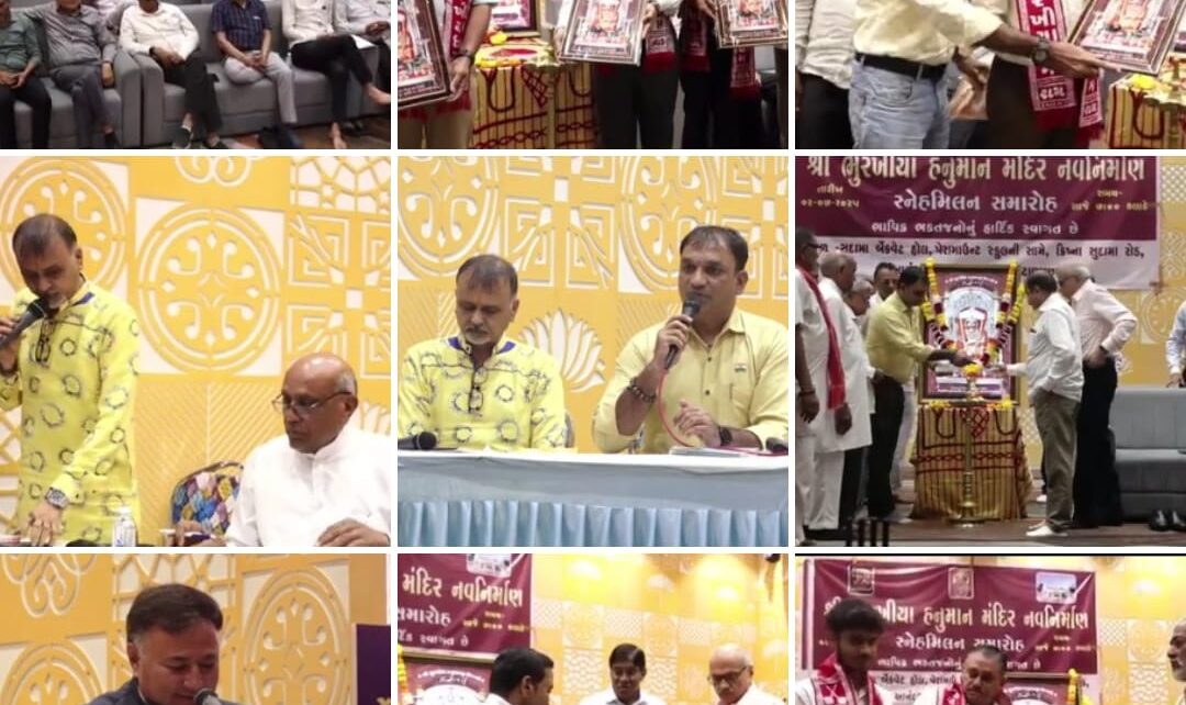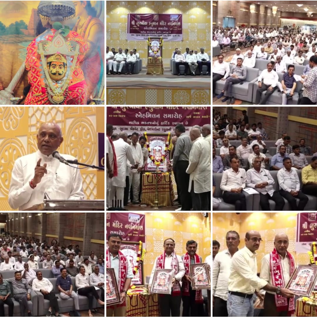 શ્રી ભુરખિયા હનુમાનજી નૂતન મંદિર નિર્માણ ને લઈ સુરત બેંકવેટ હોલ ખાતે સ્નેહ મિલન યોજાયું / નૂતન મંદિર ની અનેક વિશેષતા ઓ યુગોયુગાંતર મંદિર ની દિવ્યા અને ભવ્યતા / દામનગર સુપ્રસિદ્ધ યાત્રાધામ શ્રી ભુરખિયા હનુમાનજી નૂતન મંદિર નિર્માણ અર્થે સુરત ખાતે બેંકવેટ હોલ ખાતે સમસ્ત ભુરખિયા મંદિર પ્રશાસન ટ્રસ્ટ અને પૂજારી પરિવાર શ્રી ભુરખિયા ગામ અગ્રણી ઓની વિશાળ ઉપસ્થિતિમાં યોજાયેલ સ્નેહ મિલન માં સ્નેહ મિલન નો ઓમ ના ધ્વનિનાદ વચ્ચે હનુમાનજી ચાલીસા પઠન થી પ્રારંભ કરાયો શ્રી ભુરખિયા હનુમાનજી મંદિર ટ્રસ્ટ અને શ્રી ભુરખિયા ચેરીટેબલ ટ્રસ્ટ દ્વારા થતી અનેક વિધ સેવા પ્રવૃત્તિ ને વિડીયો પ્રોજેક્ટર દ્વારા તાદ્રશ્ય કરાવાય દેશ દેશાવર માં વસતા લાખો શ્રદ્ધાળુ ભાવિકો એ લાઈવ યુટ્યુબ અને ફેશબુક ના માધ્યમ થી સ્નેહ મિલન નિહાળ્યો સમગ્ર કાર્યક્રમ માં શ્રી ભુરખિયા હનુમાનજી મંદિર પ્રશાસન ની અન્નક્ષેત્ર આરોગ્ય શિક્ષણ હુન્નર કૌશલ્ય એમ્બ્યુલન્સ સેવા સર્વજ્ઞાતિ સમૂહ લગ્નોત્સવ જળ સંસાધન આપતી નિવારણ દુષ્કાળ રાહત સેવા જીવદયા અંધત્વ નિવારણ મહિલા સશક્તિકરણ ઉપરાંત દુરસદુર થી આવતા લાખો શ્રદ્ધાળુ યાત્રિકો માટે ઉત્તમોત્તમ સુવિધા ઓથી અવગત કરતા પ્રમુખ દુષયનભાઈ પારેખ હરજીભાઈ નારોલા સુપ્રસિદ્ધ યાત્રાધામ સ્વંયભુ શ્રી ભુરખિયા હનુમાનજી પ્રાગટય સાડા ચાર વર્ષ પૂર્વે થી હાજુરા હાજુર દેવ શ્રી ભુરખિયા દાદા માં અતૂટ શ્રદ્ધા અને વિશ્વાસ ધરાવતા લાખો દર્શનાર્થીઓ માટે ઉત્તમોત્તમ સુવિધા થી સુસજ્જ નૂતન મંદિર નિર્માણ કાર્ય નો અંદાજીત ખર્ચ ૪૦ કરોડ જેવા થનાર છે ત્રણ વર્ષ જેવા લાંબા સમય સુધી નૂતન મંદિર નિર્માણ કાર્ય ચાલનાર હોવા નું ટ્રસ્ટ દ્વારા જણાવ્યું અસંખ્ય ઉદારદિલ દાતા ઓ દાન અવિરત પ્રવાહ વ્હાવવા મંદિર પ્રશાસન નો અનુરોધ ટૂંકી મુદત ની સોશ્યલ મીડિયા પ્લેટ ફોર્મ ઉપર સ્નેહ મિલન ની એક અપીલ થી અકડેઠઠ જનમેદની એકત્રિત થઈ અનેક વિશિષ્ટતા દર્શાવતા ટ્રસ્ટી ઓ ભવ્ય અને દિવ્ય મંદિર યુગો યુગાંતર ધર્મ સેવા કર્તવ્ય પાલન નો સંદેશ આપવા સામર્થ્ય ધરાવશે મંદિર ટ્રસ્ટ ના દેશ દેશાવર માં વસતા તમામ ટ્રસ્ટી ઓ પ્રમુખ દુષયનભાઈ પારેખ જ્યેન્દ્રભાઈ પારેખ સુધીરભાઈ પારેખ દક્ષેયભાઈ પારેખ હિમતભાઈ કટારીયા અમરશીભાઈ પરમાર નરસીભાઈ ડોડીયા મનીષભાઈ નિમાવત જીતુભાઇ નિમાવત ભરતભાઇ ભટ્ટ સહિત મંદિર ટ્રસ્ટ મેનેજમેન્ટ સ્ટાફ ની ઉપસ્થિતિ માં નૂતન મંદિર નિર્માણ સંકલ્પ ને ધર્મ ઉલ્લાસ થી વધાવી લેતા ઉદારદિલ દાતા તરફ થી દાન ની સરવાણી વહાવી શુભ પ્રારંભ કરાયો હતો સમગ્ર સ્નેહ મિલન કાર્યક્રમ નું બેનમૂન સંચાલન જાણીતા મોટી વેશનલ સ્પીકર જીતુભાઇ મકવાણા અને સુરેશભાઈ મિયાણી દ્વારા કરાયું હતું દાતા રત્નો ને શ્રી ભુરખિયા દાદા ની મૂર્તિ સ્મૃતિ 