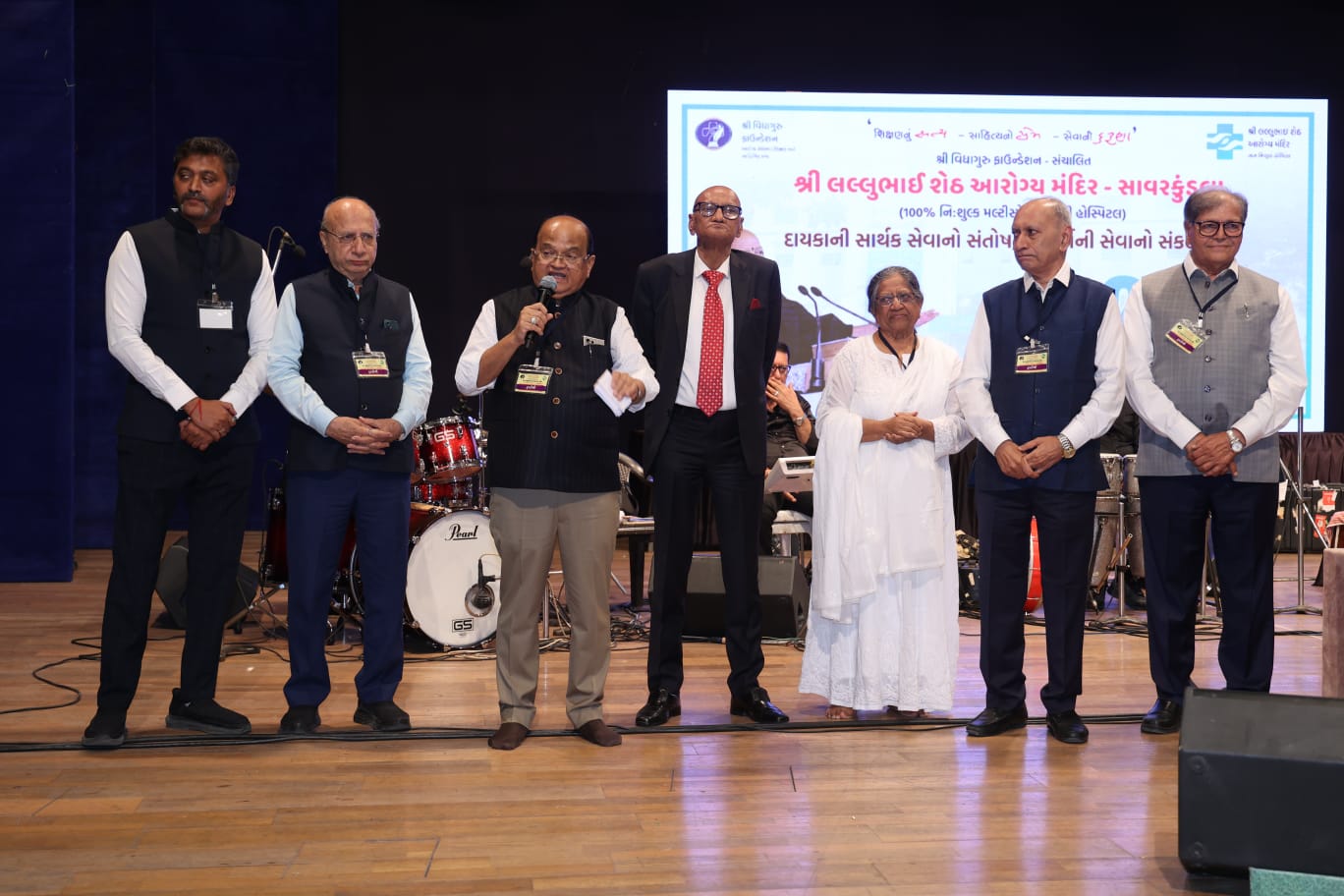 શ્રી વિદ્યાગુરુ ફાઉન્ડેશન સંચાલિત, ૧૦૦% નિશુલ્ક મલ્ટીસ્પેશ્યાલિટી હોસ્પિટલ શ્રી લલ્લુભાઇ શેઠ આરોગ્ય મંદિર દ્વારા ‘દાયકાની સાર્થક સેવાનો સંતોષ, સો વર્ષની સેવાનો સંકલ્પ!’ અંતર્ગત એક ભવ્ય સાંસ્કૃતિક સંગીત સંધ્યા ‘શતાયુ મુકેશ’ કાર્યક્રમનું હેમુ ગઢવી હોલ, રાજકોટ ખાતે આયોજન કરવામાં આવ્યું હતું.