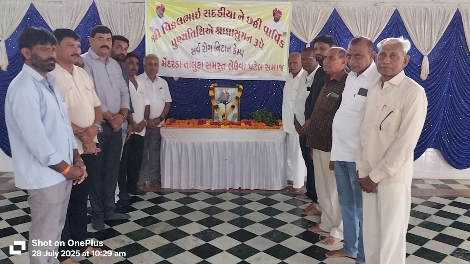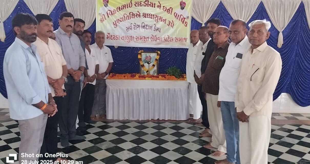 મેંદરડા ના સમઢીયાળા પટેલ સમાજ ખાતે સ્વ.વિઠ્ઠલભાઈ રાદડિયા ની છઠ્ઠી વાર્ષિક પુણ્યતિથિએ સર્વરોગ નિદાન કેમ્પ નું આયોજન કરવામાં આવેલ હતું