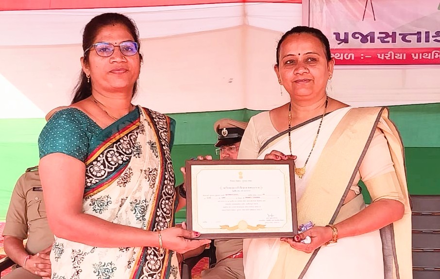ગુણાંકન માળખા અનુસાર પસંદગી પામેલ શિક્ષકોને પરીયા પ્રાથમિક શાળા ખાતે યોજાયેલ તાલુકા કક્ષાનાં ગણતંત્ર દિવસની ઉજવણીનાં શુભ અવસરે ઉપસ્થિત મહાનુભવોનાં હસ્તે પ્રમાણપત્ર આપી સન્માનિત કરવામાં આવ્યા હતાં.
