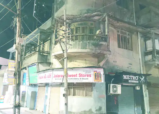 આ છત અને રવેશમાંથી પોપડા પડ્યા હતાં. જો કે, આ દરમ્યાન ઇમારતના નીચેના ભાગે આવેલી દુકાનો બંધ હોવાથી કોઈ જાનહાની થઇ ન હતી.