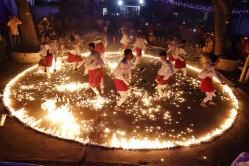 ધગધગતા અંગારા પર ખુલ્લા પગે રાસ લેતા જામનગરના યુવાનો આકર્ષણનું કેન્દ્ર બન્યા છે. 72 વર્ષથી શ્રી પટેલ યુવક ગરબીમંડળ આ પરંપરા નિભાવી રહ્યું છે. આગની જ્વાળાઓ વચ્ચે યુવાનોએ મશાલરાસ રજૂ કર્યો હતો. આગ સાથે આદ્યશક્તિની આરાધના જોઈ લોકો મંત્રમુગ્ધ થયા હતા.