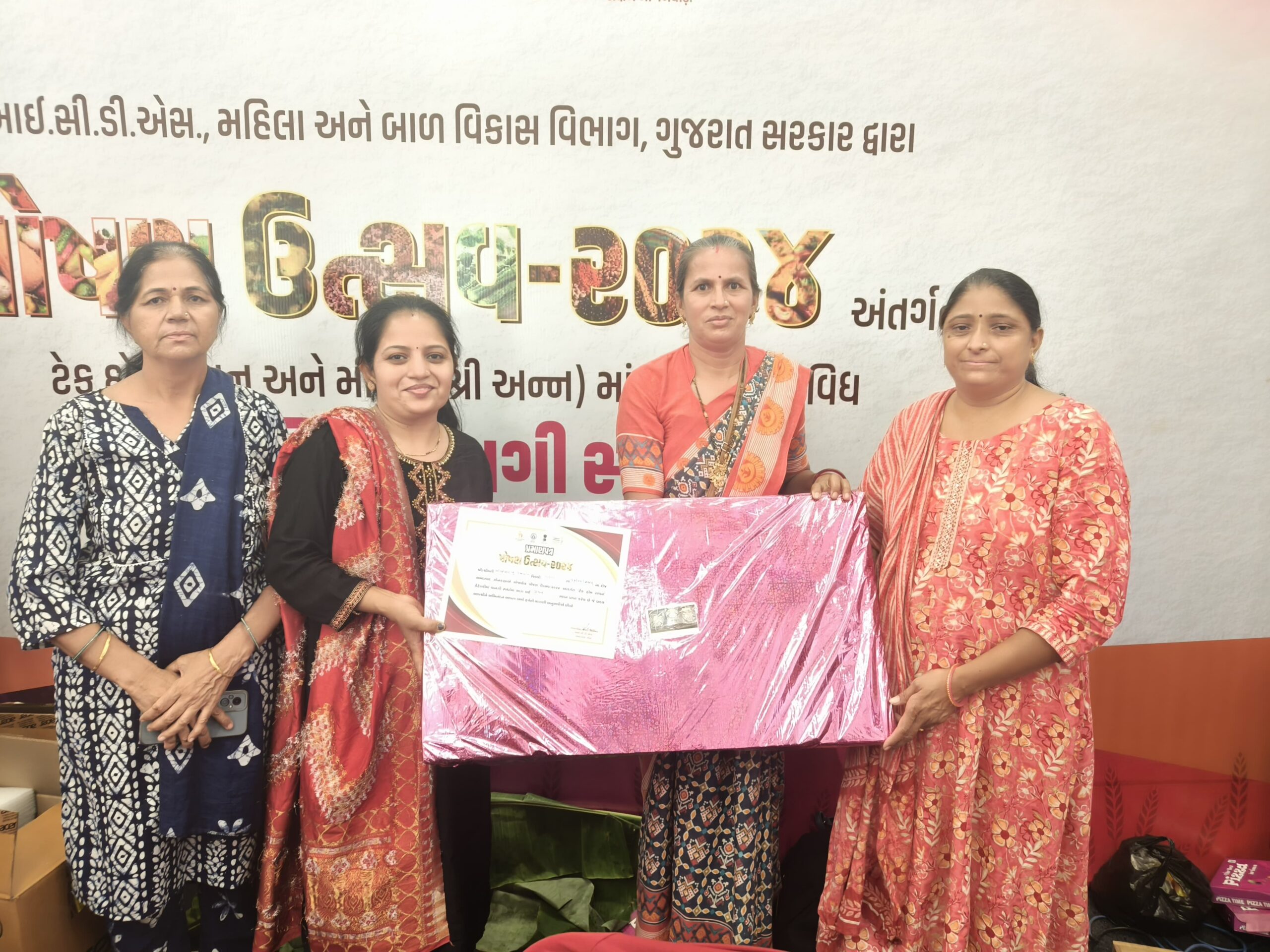 આઇસીડીએસ મહિલા અને બાળ વિકાસ વિભાગ ગુજરાત સરકાર દ્વારા પોષણ ઉત્સવ 2024 અંતર્ગત યોજાયો.જેમાં પાટણ જિલ્લાના સાંતલપુર તાલુકાના આઇસીડીએસ વિભાગ દ્વારા ઝોન કક્ષાના પોષણ ઉત્સવ કાર્યક્રમમાં 2024 અંતર્ગત આંગણવાડી કેન્દ્ર જારુંસા 1 માં પ્રજાપતિ ભીખિબેન પ્રથમ નંબર મેળવ્યો છે. જેમાં વિગત વાર જોઈએ તો સાંતલપુર ના જારુષા ગામની આંગણવાડી કાર્યકર એ ટી.એચ.આર માંથી ખજૂર બીજ ના લાડુ બનાવ્યા હતા.જે કાર્યક્રમ ગાંધીનગર ખાતે ઝોન કક્ષાનો પોષણ ઉત્સવ કાર્યક્રમ 2024 યોજાયો હતો. ટી.એચ.આર. મીલેટ્સ વાનગી ખજૂર બીટ ના સ્વાદિષ્ટ લાડુ બનાવી સાંતલપુર તાલુકામાં અનોખું સ્થાન મેળવ્યું છે.