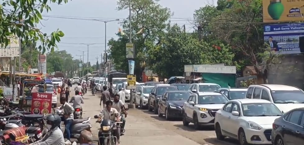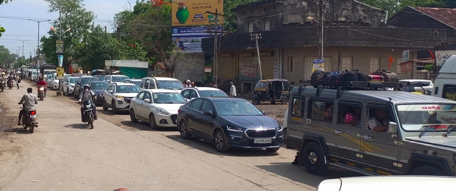 મેંદરડા શહેરમાં ટ્રાફિક જામની સમસ્યા વાહનોની લાબી કતારો