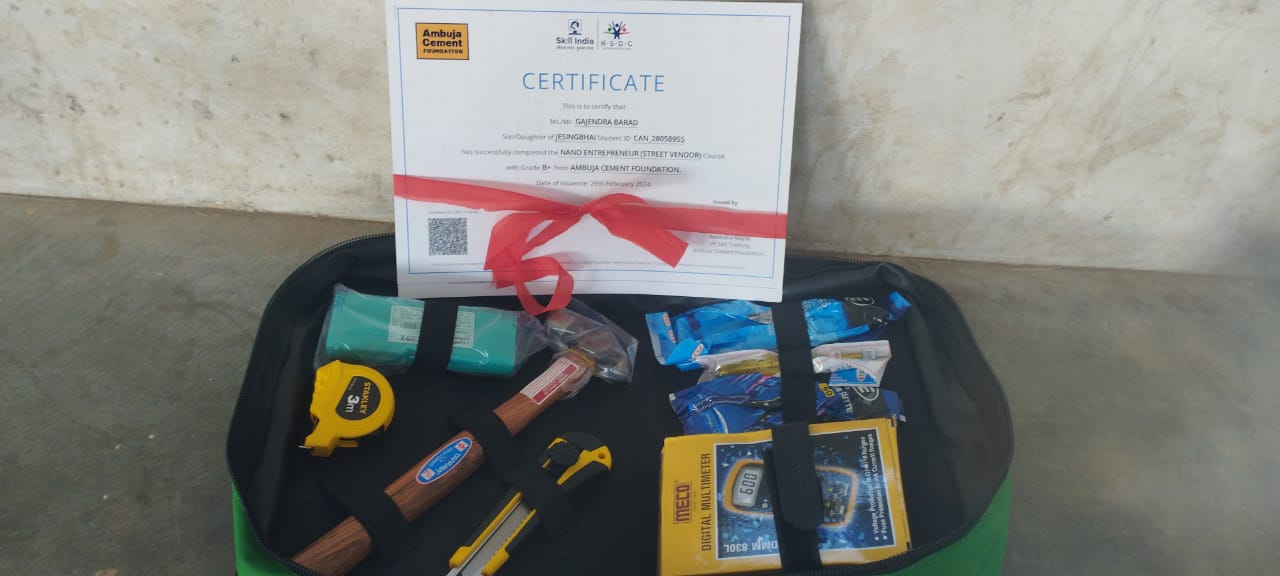 ધામળેજ મુકામે અંબુજા ફાઉન્ડેશન દ્વારા તાલીમાર્થીઓને કીટ અને સર્ટિફિકેટ અપાયા