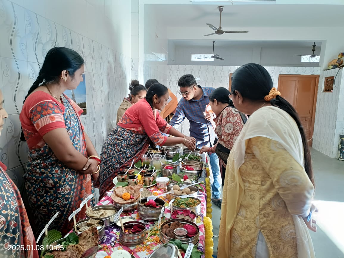 રાજકોટ શહેર તા.૯/૧/૨૦૨૫ ના રોજ મહિલા અને બાળ વિકાસ વિભાગના રાષ્ટ્રીય સ્વાસ્થ્ય મિશન અંતર્ગત રાજકોટ મહાનગરપાલિકાના ICDS વેસ્ટ ઝોન ઘટકના આંબેડકર સેજામાં “પોષણ ઉત્સવ ૨૦૨૪-૨૫” અંતર્ગત THR (માતૃશક્તિ, બાલશક્તિ, અને પૂર્ણાશક્તિ) અને મિલેટ (શ્રી અન્ન) માંથી બનતી “પૌષ્ટિક વાનગી સ્પર્ધા“ યોજવામાં આવેલ. જેમાં ટેક હોમ રાશન (માતૃશક્તિ, બાલશક્તિ અને પૂર્ણાશક્તિ) અને મિલેટ (શ્રી અન્ન) તેમજ સરગવા જેવા પૌષ્ટિક ખાદ્યો રોજીંદા જીવનમાં ઉપયોગ કરે તેવા શુભ આશયથી ICDS પ્રોગ્રામ ઓફીસર જનકસિંહજીના માર્ગદર્શન હેઠળ હરીફાઇનું આયોજન કરવામાં આવેલ. આ સ્પર્ધામાં વોર્ડનં-12ના કોર્પોરેટર તેમજ પૂર્વ મેયર ડૉ.પ્રદીપભાઈ ડવ, વોર્ડનં-12ના કોર્પોરેટર મિત્તલ બેન, મનસુખભાઇ વેકરીયા, મગનભાઇ સોરઠીયા, કિરણબેન હરસોડા, યોગેન્દ્રસિંહ જાડેજા, કપિલ્ભાઇ પંડ્યા, કિશનભાઇ ટિલવા, જયેશભાઇ પંડ્યા તથા અન્ય મહેમાનો તેમજ વેસ્ટ ઝોન CDPO અનસુયાબેન ભેંસદડીયા, મુખ્ય સેવિકા ભવ્યતાબેન પરમાર, Dpsc મમતાબેન ,Pse મોનિકાબેન, Nnm દિવ્યાબેન, પૂર્ણા કન્સલ્ટન્ટ જયશ્રીબેન, મવડી આરોગ્ય કેન્દ્રના મેડીકલ ઓફીસર ઉર્વેશ સર હાજર રહેલ હતા. વાનગી હરીફાઇમાં THR તેમજ મિલેટ્સમાંથી પ્રથમ 3 ક્રમ પર આવેલ કાર્યકર અને લાભાર્થીને પ્રમાણપત્ર આપી પ્રોત્સાહિત કરવામાં આવેલ તેમજ મવડી આરોગ્ય કેન્દ્ર દ્વારા સગર્ભા માતાને પોષણ કીટનુ વિતરણ કરવામાં આવેલ.