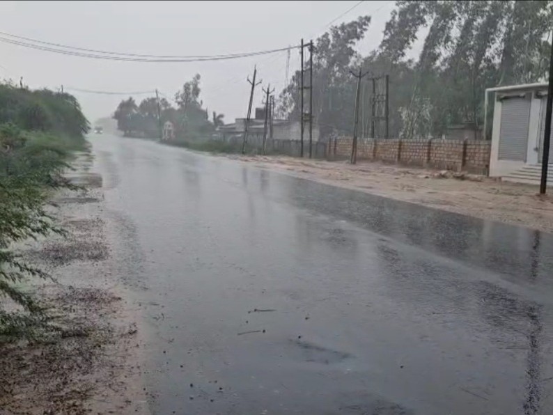 સુરેન્દ્રનગર જિલ્લાના ધ્રાંગધ્રા તાલુકાના કલ્યાણપુર ગામમાં ભારે વરસાદને કારણે નદી બે કાંઠે વહેવા લાગી છે.