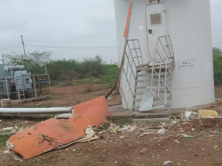 ટાવરમાં ગાબડું પડતા પવનચક્કીનું એક પાંખડું અડધું તૂટી જમીન પર પટકાયું. સદભાગ્યે આ ઘટનામાં કોઈ જાનહાનિ થઈ નથી.