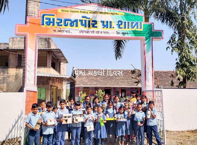 ચકલી બચાવો અભિયાન અંતર્ગત ઓલપાડ તાલુકાનાં ક્લસ્ટર રિસોર્સ સેન્ટર, કરંજ સંલગ્ન મીરજાપોર પ્રાથમિક શાળામાં આચાર્ય અંજના પટેલ તથા ઉપશિક્ષકો સોનલ બ્રહ્મભટ્ટ અને મિતેશ પટેલનાં માર્ગદર્શન હેઠળ બાળકોએ અવનવા ‘સ્પેરો હાઉસ’ તૈયાર કરી શાળામાં વિવિધ જગ્યાએ સ્થાપિત કર્યા હતાં. આ પ્રસંગે ઉપસ્થિત સી.આર.સી. કો-ઓર્ડિનેટર વિજય પટેલ જણાવ્યું હતું કે માણસજાતની બદલાતી રહેણીકરણી, શહેરીકરણ, ખેતરોમાં બેફામ જંતુનાશક દવાઓનો છંટકાવ જેવાં પરિબળોને લીધે ચકલીઓની સંખ્યા દિવસે દિવસે ઘટતી જાય છે ત્યારે સૃષ્ટિની સજાવટ માટે તેમની જાળવણી કરવી એ આપણો સાચો ધર્મ બને છે. તેમણે આજનાં દિવસનું મહત્વ સમજી ચકલીઓ માટે માળાની વ્યવસ્થા કરી સાચા અર્થમાં ચકલીદિન સાર્થક કરવાનો પ્રયત્ન કરનાર મીરજાપોર, કમરોલી, ભગવા, મંદરોઇ તથા અન્ય શાળાઓને અભિનંદન પાઠવ્યા હતાં.