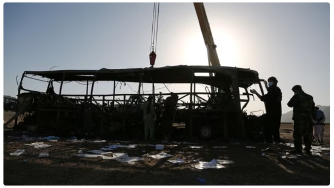 બસ ઈરાનથી હાંકી કાઢવામાં આવેલા અફઘાન શરણાર્થીઓને લઈ જઈ રહી હતી, જે લાખો લોકોના સ્થળાંતરનો ભાગ હતા, જેઓ સરહદથી કાબુલ જઈ રહ્યા હતા.