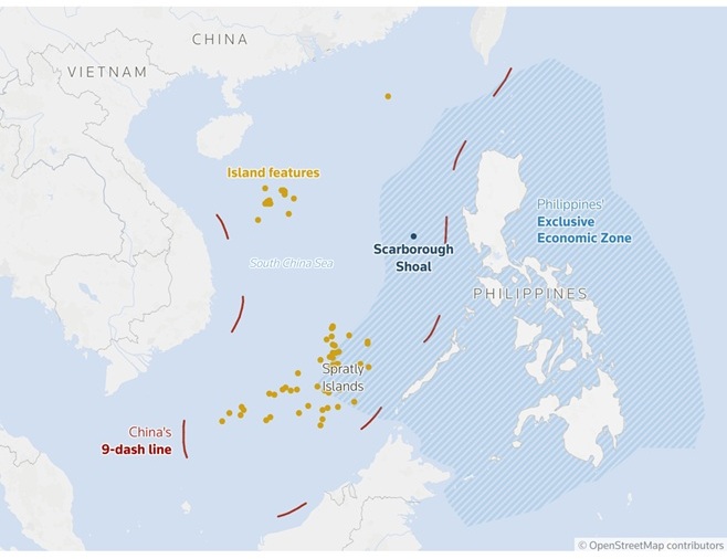 ચીન લગભગ સમગ્ર દક્ષિણ ચીન સમુદ્ર પર દાવો કરે છે, જે બ્રુનેઈ, ઇન્ડોનેશિયા, મલેશિયા, ફિલિપાઇન્સ અને વિયેતનામના વિશિષ્ટ આર્થિક ક્ષેત્રોને ઓવરલેપ કરે છે. વિવિધ ટાપુઓ અને સુવિધાઓની માલિકી અંગે વર્ષોથી વણઉકેલાયેલા વિવાદો ચાલુ છે.