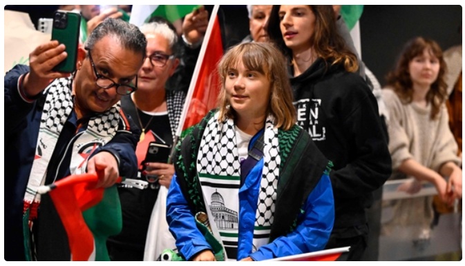 ગ્રેટા થનબર્ગે સમર્થકોને તેમની સરકારોને “ગાઝામાં માનવતાવાદી સહાયની માંગણી કરવા માટે જ નહીં, પરંતુ સૌથી અગત્યનું, કબજાનો અંત લાવવા અને પેલેસ્ટિનિયનો રોજિંદા ધોરણે સામનો કરી રહેલા પ્રણાલીગત જુલમ અને હિંસાનો અંત લાવવા” માટે હાકલ કરી.