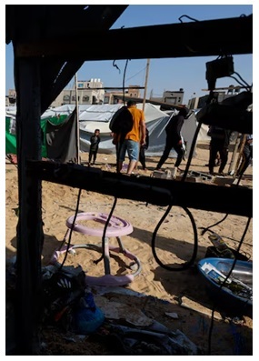 ગાઝા શહેરના ઝેઇટોન ઉપનગરમાં, જ્યાં બુધવારે વિસ્થાપિત પરિવારોને રહેતી એક ઇમારતમાં ઓછામાં ઓછા ૧૦ લોકો માર્યા ગયા હતા, પેલેસ્ટિનિયનો કાટમાળમાંથી ફર્નિચર અને સામાન બચાવવા માટે શોધ કરી રહ્યા હતા કારણ કે બચાવ કાર્યકરો વધુ પીડિતોની શોધ કરી રહ્યા હતા.