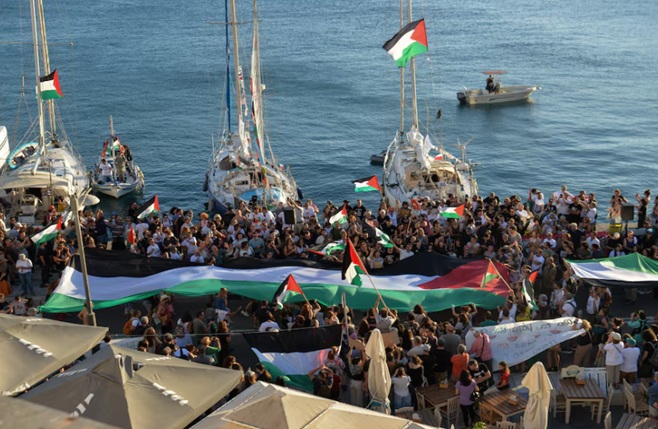 ગ્લોબલ સુમુદ ફ્લોટિલા ઇઝરાયલના ગાઝા પરના નૌકાદળના નાકાબંધીને તોડવા માટે લગભગ ૫૦ નાગરિક બોટનો ઉપયોગ કરી રહ્યું છે. સ્વીડિશ આબોહવા પ્રચારક ગ્રેટા થનબર્ગ સહિત ઘણા વકીલો, સંસદસભ્યો અને કાર્યકરો તેમાં સામેલ છે.