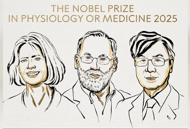 જાપાનના અમેરિકન વૈજ્ઞાનિકો મેરી બ્રુન્કો અને ફ્રેડ રેમ્સડેલ અને શિમોન સાકાગુચીને સોમવારે ફિઝિયોલોજી અથવા મેડિસિનમાં ૨૦૨૫ નો નોબેલ પુરસ્કાર જીત્યો, જેમણે રોગપ્રતિકારક શક્તિ સ્વસ્થ કોષોને કેવી રીતે બચાવે છે, શક્ય નવા સ્વયંપ્રતિરક્ષા રોગો અને કેન્સરની સારવાર માટે ખુલ્લા માર્ગો બનાવે છે તેના પર પ્રકાશ પાડ્યો.
