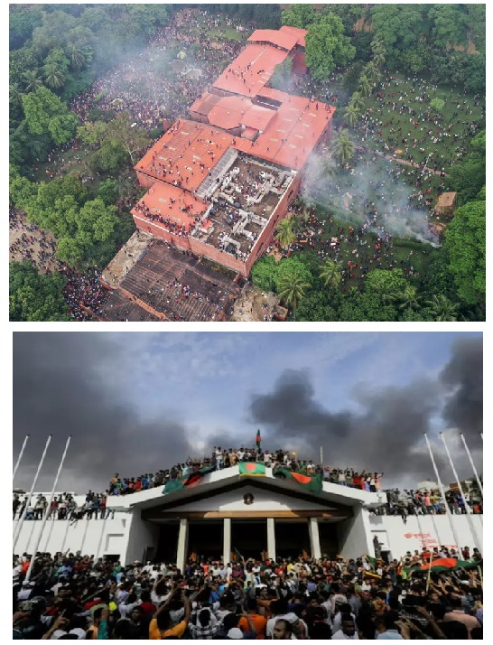 હસીના ઢાકા ભાગી ગયાના થોડીવાર પછી, હિંસક ટોળા દ્વારા તેમના સત્તાવાર નિવાસસ્થાનને લૂંટી લેવામાં આવ્યું હતું. ટોળાના સભ્યો દ્વારા સાડીઓ, સુશોભન વસ્તુઓ, ઘડિયાળો, સોફા, વૈભવી હેન્ડબેગ, ટેલિવિઝન સેટ અને રસોડામાંથી માછલીઓ પણ લૂંટી લેવામાં આવી હતી.