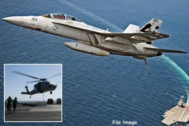 એક સી હોક હેલિકોપ્ટર બપોરે લગભગ ૨:૪૫ વાગ્યે તૂટી પડ્યું. રવિવારે અને તેના થોડા સમય પછી, દક્ષિણ ચીન સમુદ્રમાં એક હ્લ/છ-૧૮હ્લ સુપર હોર્નેટ ફાઇટર જેટ પણ ક્રેશ થયું, નૌકાદળે જણાવ્યું.