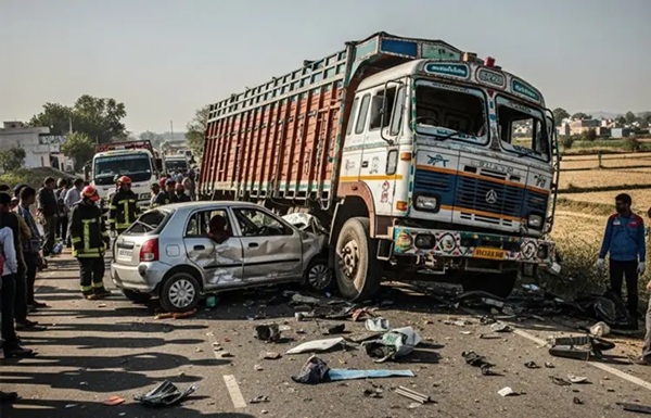 આ અકસ્માતમાં મૃતકોમાં એક જ પરિવારના ૯ લોકો સામેલ છે અને તેઓ કોઈ લગ્ન સમારોહમાં હાજરી આપીને ઘરે પાછા ફરી રહ્યા હતા. આ દરમિયાન ભયંકર અકસ્માત સર્જાઈ ગયો હતો. ટક્કર એટલી ભયાનક હતી કે કારનું પડીકું વળી ગયું હતું. મૃતકોમાં ૨ પુરુષ, ૩ મહિલાઓ અને ૪ બાળકો સામેલ છે.
