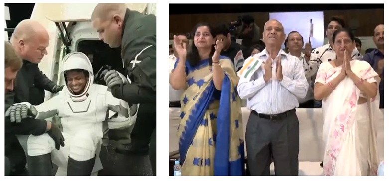 શુક્લાના માતા-પિતા આનંદ અને ઉજવણી કરતા જાેવા મળ્યા કારણ કે તેને ડ્રેગન સ્પેસક્રાફ્ટમાંથી રિકવરી વાહન પર લાવવામાં આવ્યો હતો. તેની માતા, આશા શુક્લા, જ્યારે તેણીએ પહેલી વાર તેને જાેયો ત્યારે તેણીના રડવા લાગ્યા. “મારો દીકરો સુરક્ષિત રીતે પાછો ફર્યો છે, હું ભગવાનનો આભાર માનું છું, તમે બધા જેમણે આ ઘટનાને કવર કરી છે. હું ભાવુક થઈ ગઈ, છેવટે, મારો દીકરો ઘણા દિવસો પછી પાછો ફર્યો છે”, તેણીએ કહ્યું.