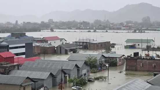 ભારે વરસાદ બાદ મણિપુરમાં પણ નદીઓ જાેખમના સ્તરથી ઉપર વહી રહી છે. ઈમ્ફાલ પૂર્વમાં અનેક વિસ્તાર પૂરના પાણીમાં ડૂબી ગયા છે. ઈમ્ફાલના પશ્ચિમ જિલ્લામાં ૧૯૭.૮ મીમી વરસાદ નોંધાયો હતો. આસામમાં પણ છેલ્લા ૨૪ કલાકમાં છ જિલ્લામાં મૂશળધાર વરસાદના કારણે ભૂસ્ખલન થતાં પાંચ લોકોનાં મોત નીપજ્યાં હતા તથા ૧૦૦૦૦થી વધુ લોકો અસરગ્રસ્ત બન્યા હતા. હવામાન વિભાગે અનેક વિસ્તારોમાં રેડ અને ઓરેન્જ એલર્ટ જાહેર કરી છે.
