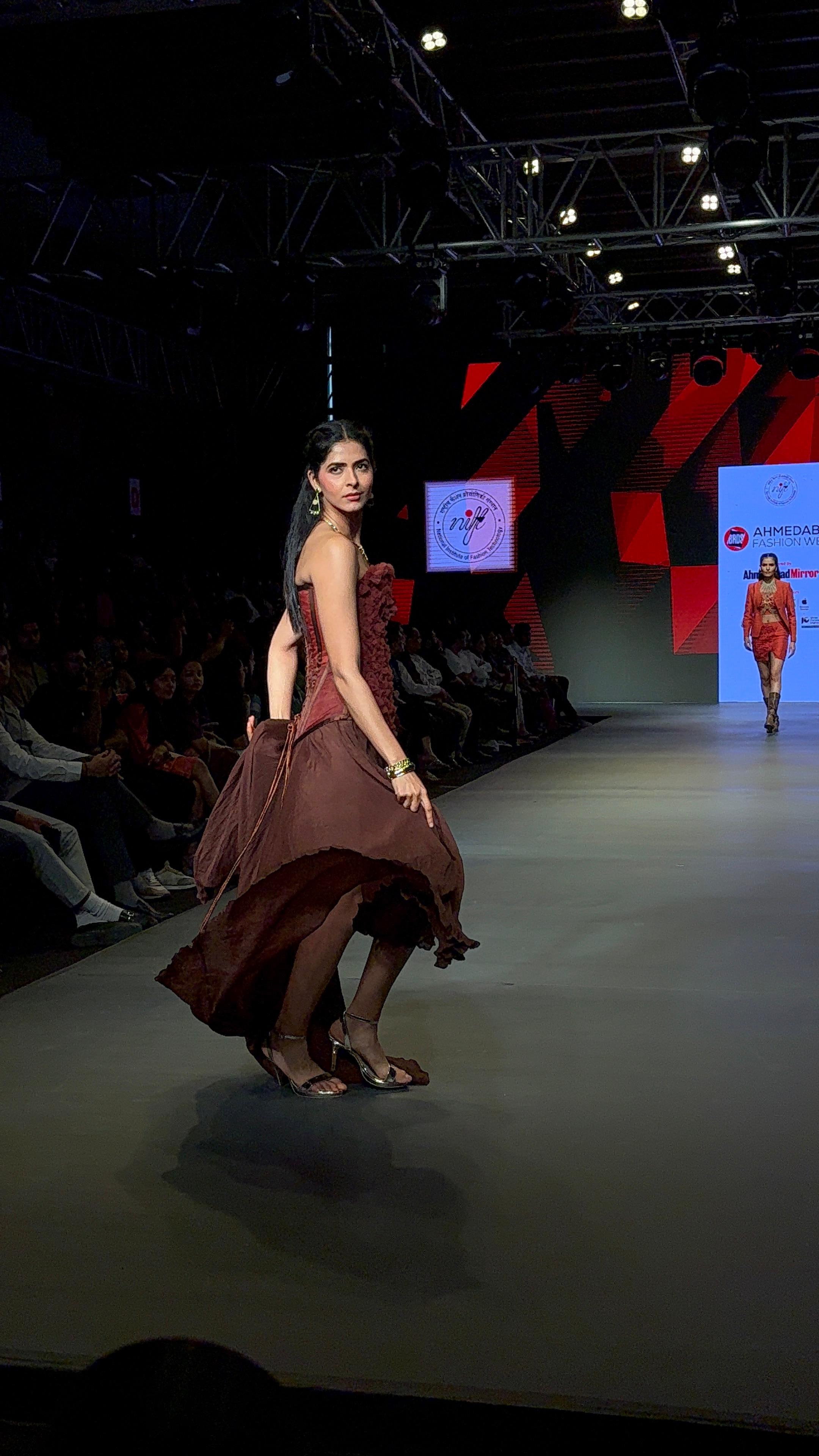 અમદાવાદ ફેશન વીક નિફ્ટ ગાંધીનગરના વિદ્યાર્થીઓના શક્તિશાળી સંગ્રહો માટેનું આકર્ષણ બની ગયું હતું, જેમાં દરેક અલગ પરંતુ ઊંડાણપૂર્વક એકબીજા સાથે જાેડાયેલા વર્ણનોની શોધ કરે છે. આ સંગ્રહો મૂળ તરફ પાછા ફરવા, પ્રકૃતિનું પુન:અર્થઘટન, વ્યક્તિગત વર્ણનો અને આધ્યાત્મિક યાત્રાને પ્રતિબિંબિત કરે છે.