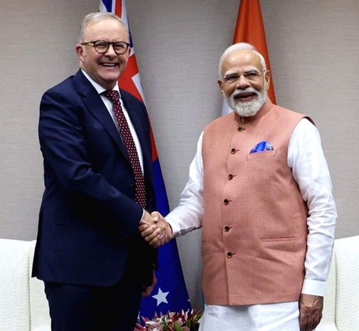 G20 સમિટ દરમિયાન વડા પ્રધાન નરેન્દ્ર મોદી જાેહાનિસબર્ગમાં તેમના ઓસ્ટ્રેલિયન સમકક્ષ એન્થોની અલ્બેનીઝને મળ્યા હતા. વડા પ્રધાન કાર્યાલય અનુસાર, બંને નેતાઓએ અનેક ક્ષેત્રોમાં ભારત-ઓસ્ટ્રેલિયા સહયોગને મજબૂત બનાવવા સહિત અનેક પાસાઓ પર ચર્ચા કરી હતી.