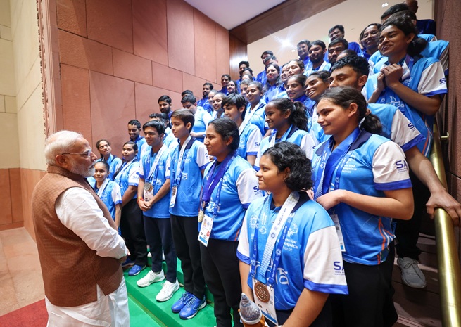 શ્રી મોદી આજે સંસદમાં રમતવીરોને મળ્યા અને તેમના સમર્પણ અને સિદ્ધિઓ બદલ અભિનંદન આપ્યા.