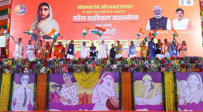 પ્રધાનમંત્રીશ્રી મોદીએ મધ્ય પ્રદેશના ભોપાલમાં લોકમાતા દેવી અહિલ્યાબાઈ હોલકરની ૩૦૦મી જન્મજયંતી નિમિત્તે મહિલા સશક્તીકરણ મહા સંમેલનને સંબોધિત કર્યું