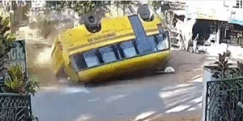 કેરળના કન્નુરમાં બુધવારે સાંજે એક સ્કૂલબસ પલટી જતાં એક વિદ્યાર્થિનીનું મોત થયું હતું. જ્યારે ૧૪ બાળકો ઘાયલ થયાં છે. આ બસ કુરુમાથુર ચિન્મય સ્કૂલની હતી. તે બાળકોને સ્કૂલેથી ઘરે લઈ જતી હતી. બ્રિજ પરથી ઊતરતી વખતે ડ્રાઈવરે બસ પરનો કાબૂ ગુમાવ્યો હતો. બસ ઝડપથી ઢાળ નીચે ઊતરવા લાગી. આ દરમિયાન તે એક થાંભલા સાથે અથડાઈ અને બે વાર પલટી ગઈ હતી. આ સમગ્ર ઘટના નજીકના ઘરમાં લાગેલા ઝ્રઝ્ર્ફમાં કેદ થઈ ગઈ હતી. વીડિયોમાં જાેઈ શકાય છે કે બસ ઢાળ પરથી ઊતરે છે.