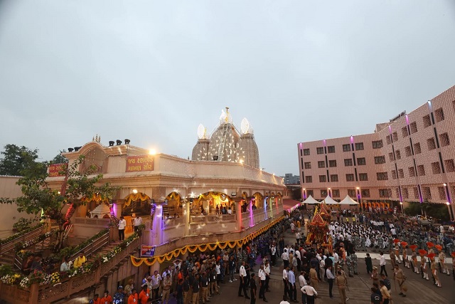 ગૃહ રાજ્યમંત્રી શ્રી હર્ષ સંઘવી, સહકાર રાજ્યમંત્રી શ્રી જગદીશભાઈ વિશ્વકર્મા, અમદાવાદ મ્યુનિસિપલ કોર્પોરેશનનાં મેયર શ્રીમતી પ્રતિભાબેન જૈન પણ આ વિધિમાં ભક્તિભાવપૂર્વક સહભાગી થયા હતા.