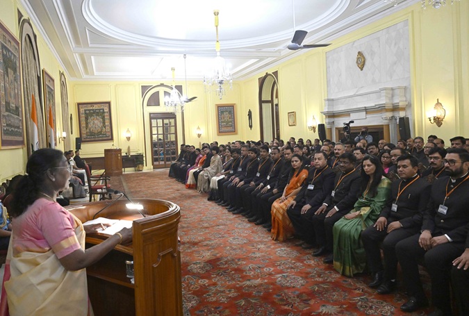 LBSNAA ખાતે ૧૨૬માં ઇન્ડક્શન તાલીમ કાર્યક્રમમાં ઉપસ્થિત રાજ્ય નાગરિક સેવા અધિકારીઓએ રાષ્ટ્રપતિ ભવનમાં ભારતના રાષ્ટ્રપતિ શ્રીમતી દ્રૌપદી મુર્મુને મળ્યા. આ પ્રસંગે બોલતા, રાષ્ટ્રપતિએ અધિકારીઓને ભારતીય વહીવટી સેવામાં બઢતી અને પ્રવેશ બદલ અભિનંદન આપ્યા અને કહ્યું કે તેમણે તેમની નવી ભૂમિકામાં પ્રેરણા આપવી જાેઈએ અને ઉદાહરણ દ્વારા નેતૃત્વ કરવું જાેઈએ, તેમની આસપાસના લોકોને જાહેર સેવામાં શ્રેષ્ઠતા માટે પ્રયત્નશીલ રહેવા માટે પ્રેરિત કરવા જાેઈએ. તેમણે તેમને વહીવટી કામગીરી અને સરકારી નીતિઓ અને કાર્યક્રમોના અમલીકરણમાં રાષ્ટ્રીય અને સમાવેશી અભિગમ અપનાવવાની સલાહ આપી.