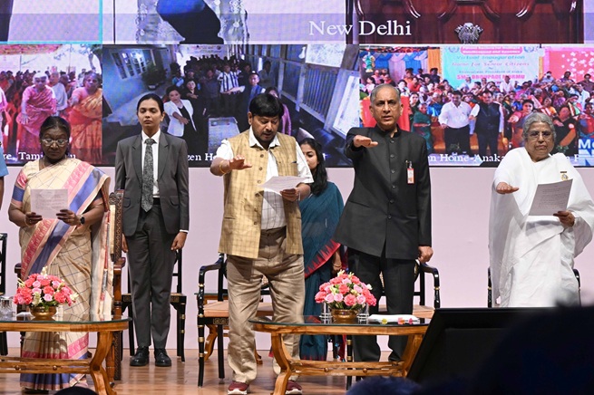 ભારતના રાષ્ટ્રપતિ, શ્રીમતી દ્રૌપદી મુર્મુએ રાષ્ટ્રપતિ ભવન સાંસ્કૃતિક કેન્દ્ર ખાતે ‘ગૌરવ સાથે વૃદ્ધત્વ‘ – વરિષ્ઠ નાગરિકોના કલ્યાણ માટે પહેલ કાર્યક્રમમાં હાજરી આપી હતી. કેન્દ્રીય સામાજિક ન્યાય અને સશક્તિકરણ મંત્રાલય દ્વારા આયોજિત આ કાર્યક્રમમાં વરિષ્ઠ નાગરિકો કલ્યાણ પોર્ટલનું લોન્ચિંગ, વરિષ્ઠ નાગરિકોના ઘરોનું વર્ચ્યુઅલ ઉદ્ઘાટન, સહાય અને સહાયક ઉપકરણોનું વિતરણ અને સામાજિક ન્યાય અને સશક્તિકરણ વિભાગ અને બ્રહ્માકુમારી સંગઠન વચ્ચે સમજૂતી કરાર પર હસ્તાક્ષર થયા હતા.