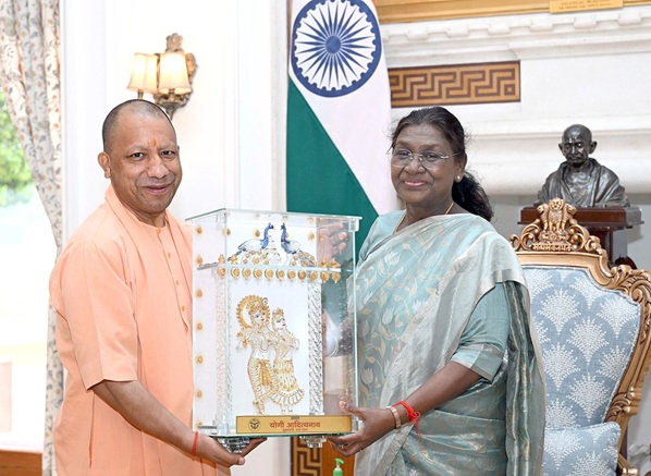 દિલ્હીની તાજેતરની મુલાકાત દરમિયાન, ઉત્તર પ્રદેશના મુખ્યમંત્રી યોગી આદિત્યનાથે શનિવારે (૨૫ ઓક્ટોબર) રાષ્ટ્રપતિ ભવનમાં ભારતના રાષ્ટ્રપતિ દ્રૌપદી મુર્મુ સાથે સૌજન્ય મુલાકાત કરી. આ મુલાકાત દરમિયાન, મુખ્યમંત્રી યોગીએ રાષ્ટ્રપતિના અમૂલ્ય સમય માટે હૃદયપૂર્વક આભાર વ્યક્ત કર્યો. રાષ્ટ્રપતિ કાર્યાલય અને યુપીના મુખ્યમંત્રી કાર્યાલયે ઠ ના રોજ મુલાકાતનો એક ફોટો શેર કર્યો.