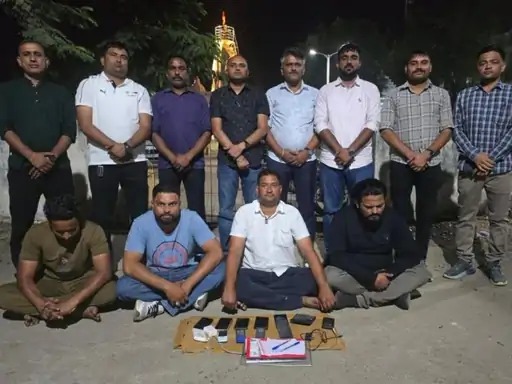 દહેગામ પોલીસ મથકના પીઆઇ મુકેશ દેસાઈની ટીમ પાલુન્દ્રા બીટ વિસ્તારમાં પેટ્રોલિંગ કરી રહી હતી. ત્યારે બાતમી મળી હતી કે હાજીમીયા ઉસ્માનમીયા શેખ નામનો શખ્સ પાલુન્દ્રા ગામની સીમના સર્વે નંબર ૨૭૯ વાળા પોતાના ખેતરમાં કેટલાક લોકોને બોલાવી સટ્ટો રમાડી રહ્યો છે. આ બાતમીના આધારે પોલીસે બાતમી વાળી જગ્યાએ દરોડો પાડતા ચાર શખ્સો ઝાડના છાયડે બેસીને મોબાઈલ દ્વારા ગ્રાહકો સાથે ટેલીફોનીક સોદા કરતા જાેવા મળ્યા હતાં. જેમની તપાસ દરમિયાન ખૂલ્યું હતું કે, આ શખ્સો ક્રિકેટ ગુરુ એપ્લિકેશન પર રોયલ ચેલેન્જર્સ બેંગલોર વિરુદ્ધ દિલ્હી કેપિટલ્સ વચ્ચે રમાઈ રહેલી ટી-૨૦ મેચ પર હાર-જીતનો જુગાર રમી અને રમાડી રહ્યા હતા.