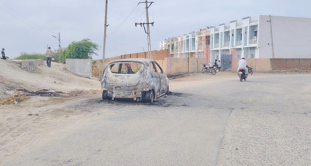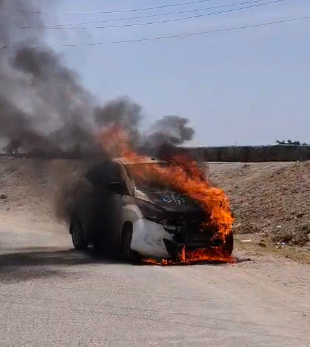 સમી નજીક રોડ પર ચાલતી કારમાં અચાનક આગ ભભૂકી-શોર્ટ સર્કિટથી કાર બળી ને ખાખ, બે વ્યક્તિઓનો આબાદ બચાવ..