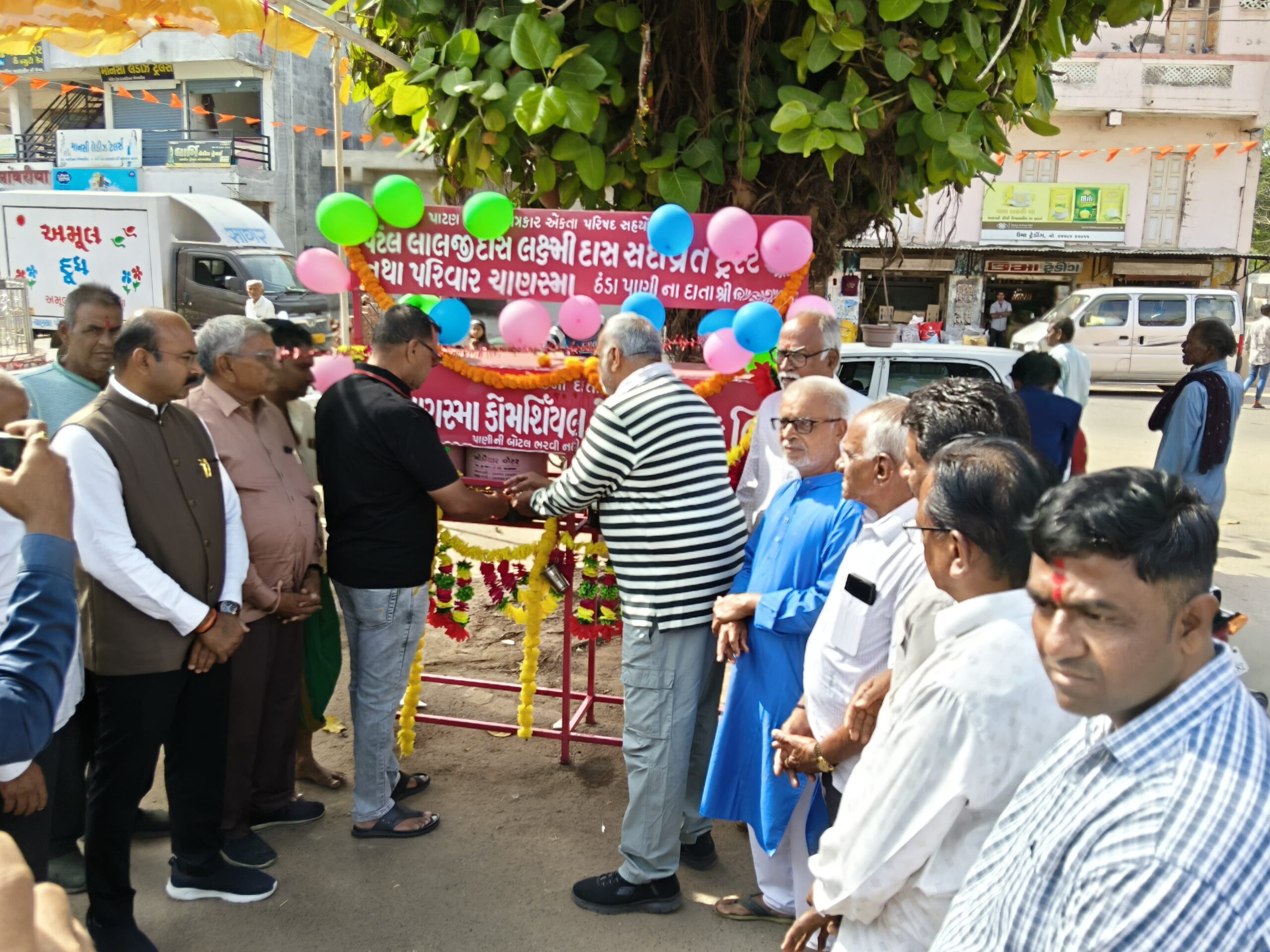 પાટણ જિલ્લાના ચાણસ્મા ખાતે ઉનાળાની શરૂઆત સાથે માનવસેવા અને જીવદયાને કેન્દ્રમાં રાખીને પત્રકાર એકતા પરિષદ તથા દાતાશ્રીઓના સહયોગથી જનહિતનું સરાહનીય કાર્ય હાથ ધરવામાં આવ્યું હતું. ચાણસ્માના પશાભાઈની ઓફિસ પાસે આવેલા ચોકમાં તેમજ સરદાર ચોક ખાતે ઠંડા પાણીના બે પરબનું લોકાર્પણ કરી લોકસેવાનો પ્રારંભ કરવામાં આવ્યો હતો. આ પ્રસંગે “પાણીના પાંચ પુણ્ય” જેવી કહેવતને સાચા અર્થમાં સાકાર કરતું સેવાકાર્ય જોવા મળ્યું હતું.ઉનાળાની તીવ્ર ગરમી વચ્ચે રાહદારીઓ, મુસાફરો, વેપારીઓ અને સામાન્ય નાગરિકોને પીવાનું ઠંડું પાણી સરળતાથી ઉપલબ્ધ બને તે હેતુથી બંને સ્થળોએ પાણીના પરબ જાહેર જનતા માટે ખુલ્લા મુકવામાં આવ્યા હતા. લોકો માટે ઉપયોગી બની રહે તેવી આ વ્યવસ્થા પત્રકાર એકતા પરિષદ અને સમાજહિતચિંતક દાતાઓના સહકારથી ઉભી કરવામાં આવી હતી. પાણી જેવી મૂળભૂત જરૂરિયાતને સેવા રૂપે સમાજને અર્પણ કરવાનો આ પ્રયાસ સ્થાનિક સ્તરે પ્રશંસનીય બન્યો હતો.