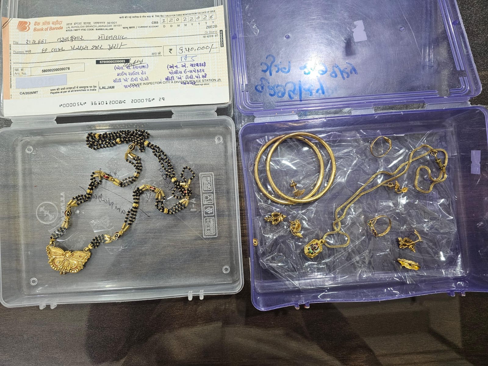 પોલીસે તપાસ હાથ ધરી ચોરને ઝડપી પાડ્યો હતો અને તેને અદાલતમાં રજૂ કર્યો હતો. ચોરાયેલા 9 લાખ રૂપિયાના ઘરેણાં સહિતનો મુદ્દામાલ પોલીસે કબજે કર્યો હતો. અદાલતી કાર્યવાહી પૂર્ણ થયા બાદ અને અદાલતનો હુકમ મેળવી લીધા પછી, પોલીસે ‘તેરા તુજકો અર્પણ’ કાર્યક્રમ હેઠળ તરુણભાઈ અને તેમના પરિવારને પોલીસ મથકે બોલાવી તેમના ઘરેણાં સુપરત કર્યા હતા.