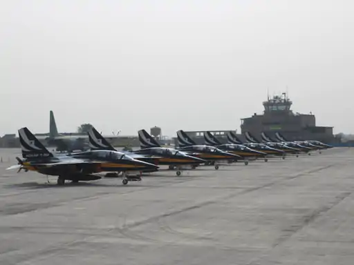 આ ટુકડીમાં બ્લેક ઇગલ્સ એરોબેટિક ટીમના નવ T-50B વિમાન અને એક C-130 ટ્રાન્સપોર્ટ વિમાનનો સમાવેશ થાય છે. આ વિમાનોએ જામનગર એરફોર્સ રનવે પર લેન્ડિંગ કર્યું હતું. જામનગર એરફોર્સ દ્વારા કોરિયન ટુકડીને લેન્ડિંગ અને ટેકનિકલ સુવિધાઓ માટે પરવાનગી આપવામાં આવી હતી. ભારતીય વાયુસેનાએ તેમને જરૂરી સહયોગ પૂરો પાડ્યો હતો.