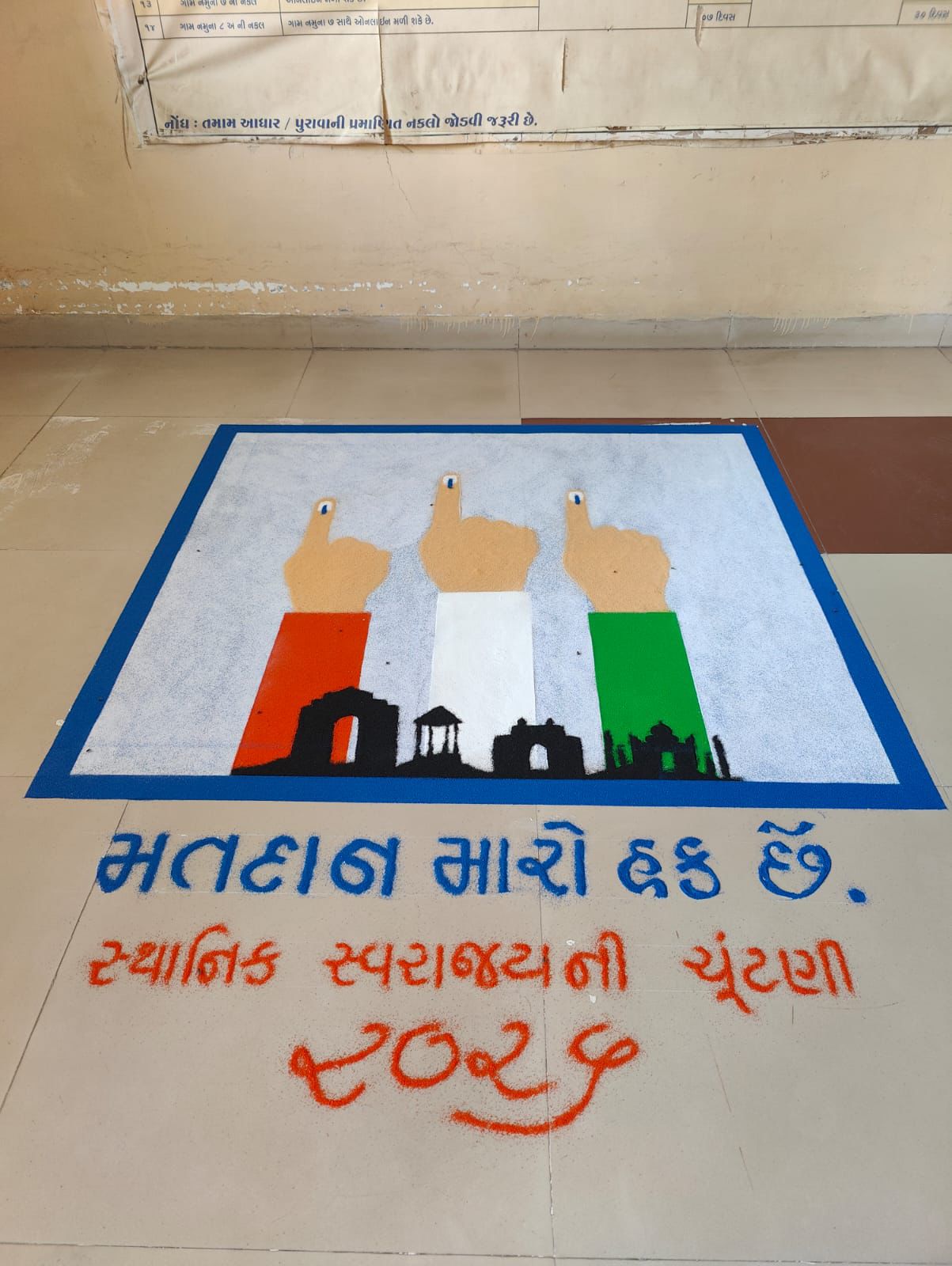 સ્થાનિક સ્વરાજ્યની સંસ્થાઓની સામાન્ય ચૂંટણીને અનુલક્ષીને જામનગર જિલ્લામાં સ્વીપ એક્ટિવિટી હેઠળ મતદાન જાગૃતિ અભિયાન અંતર્ગત શાળાઓમાં વિવિધ કાર્યક્રમોનું આયોજન કરવામાં આવ્યું છે. જામનગર જિલ્લા ચૂંટણી અધિકારીશ્રી પી.બી.પંડયાના માર્ગદર્શન હેઠળ સ્વીપ એક્ટિવિટીના ભાગરૂપે લોકો માટે લોકશાહી મૂલ્યો પ્રત્યે જાગૃતિ લાવવા અને મતદાનનું મહત્વ સમજાવવા માટે વિવિધ સર્જનાત્મક પ્રવૃત્તિઓ હાથ ધરવામાં આવી હતી.