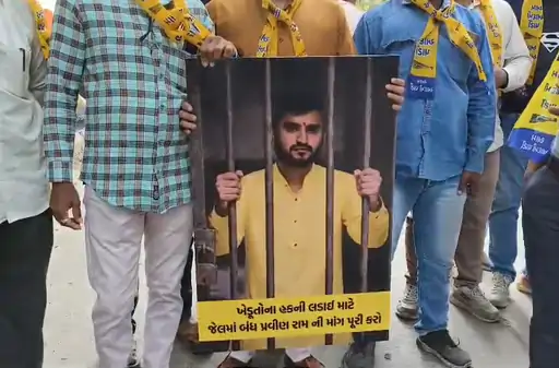 સૌરાષ્ટ્રના ઘેડ વિસ્તારની દયનીય સ્થિતિ અને પૂરના પ્રશ્ને આજે આમ આદમી પાર્ટીએ સરકાર સામે મોરચો માંડ્યો છે. જૂનાગઢ કલેક્ટર કચેરી ખાતે આજે ‘આપ’ના કાર્યકરો અને નેતાઓએ ઉગ્ર સૂત્રોચ્ચાર સાથે આવેદનપત્ર પાઠવ્યું હતું. આ વિરોધ પ્રદર્શનમાં ખાસ આકર્ષણનું કેન્દ્ર જેલમાં બંધ ‘આપ’ નેતા પ્રવીણ રામના પોસ્ટરો રહ્યા હતા. કાર્યકરોએ પ્રવીણ રામના પોસ્ટરો હાથમાં રાખી સરકારની દમનકારી નીતિનો વિરોધ કર્યો અને ઘેડના પ્રશ્ને સરકારને આડે હાથ લીધી હતી.