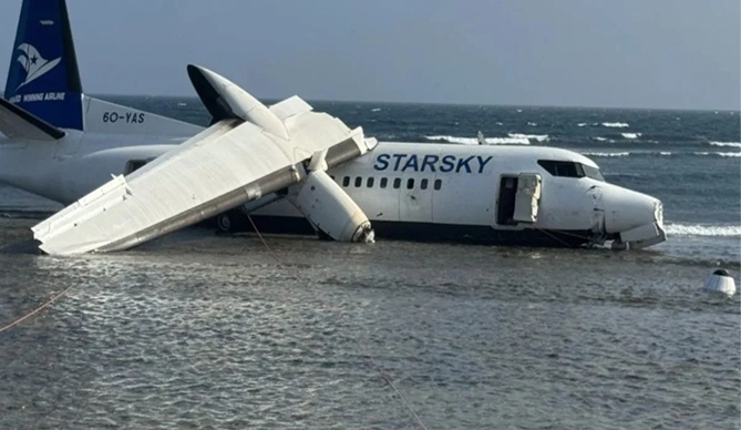 સોમાલિયામાં ૫૫ મુસાફરો સાથેનું વિમાન રનવે પરથી લપસી દરિયા કિનારે પડ્યું
